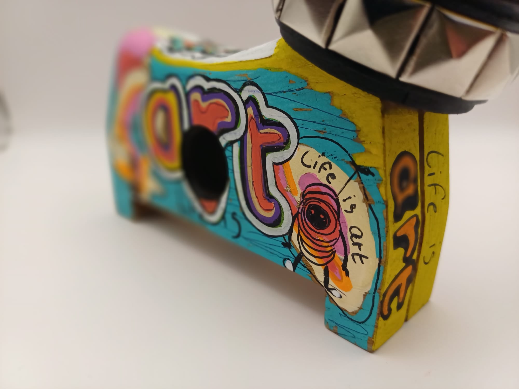 Avec son corps en bois de hêtre peint (3 couches), ainsi que son collier personnalisé (cuir, acier, métal...), cette petit oeuvre d'art en forme de chien allie originalité et sophistication.