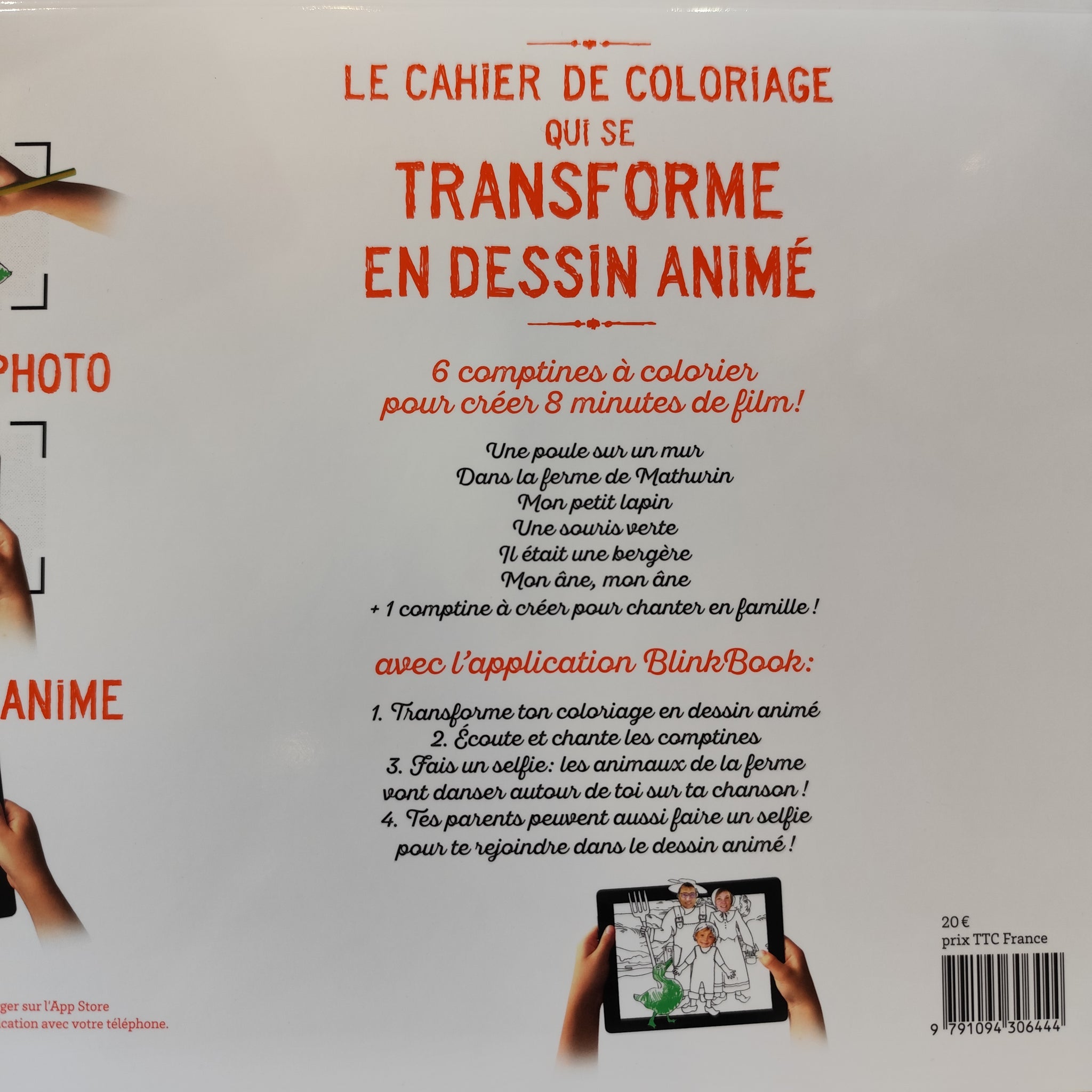 Le Cahier de Dessin Animé - Les comptines de la ferme, est un livre à lire et colorier qui se transforme dessin animé !