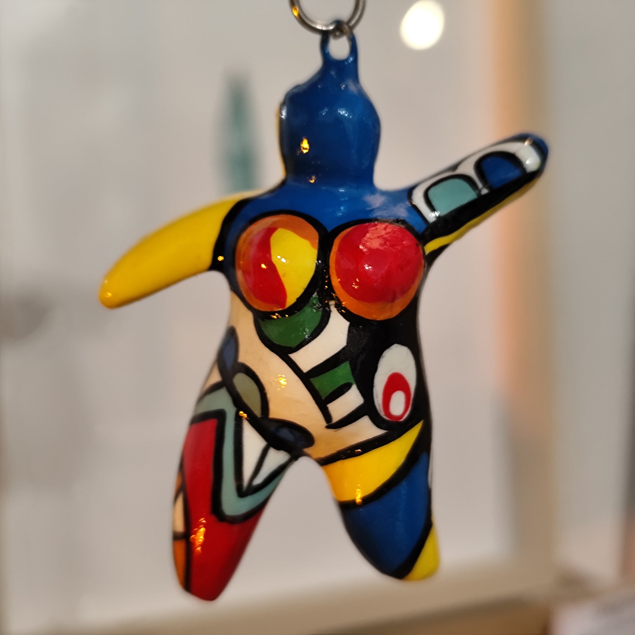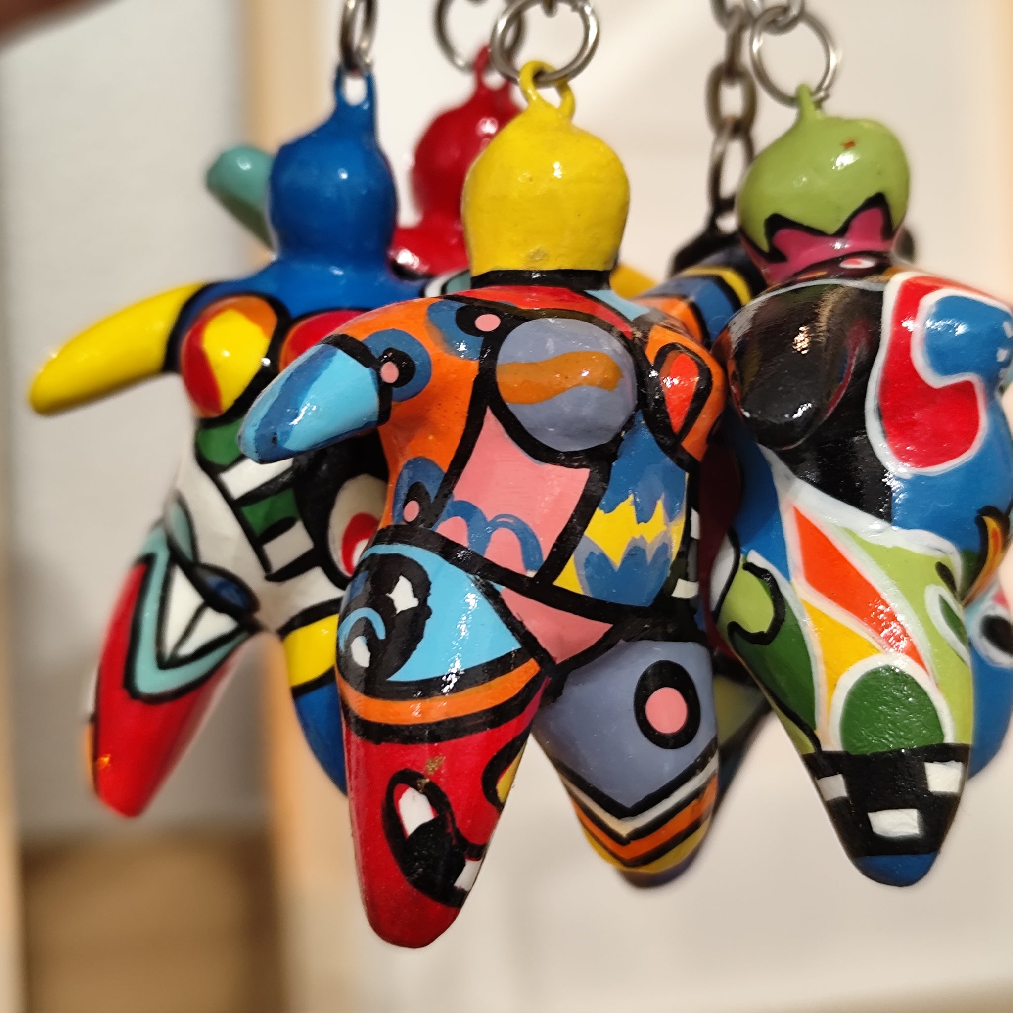 Statuette montée en porte-clés, façon Nana de Niki de Saint Phalle ou Botero.
