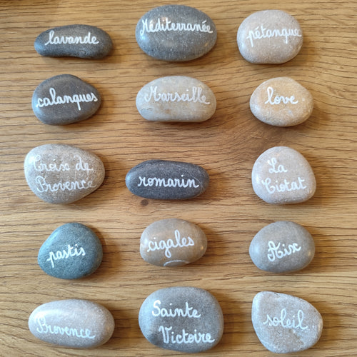 Des mots inspirants sur de jolis galets.