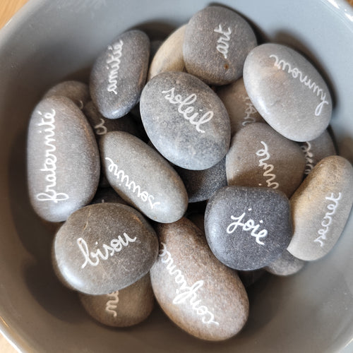 Optez pour la version Bol de 15, 30 ou 50 galets et piochez un ou plusieurs galets chaque jour. Un petit rituel qui fait du bien et qui apportera une motivation, un réconfort ou l'inspiration à chaque moment de votre journée.