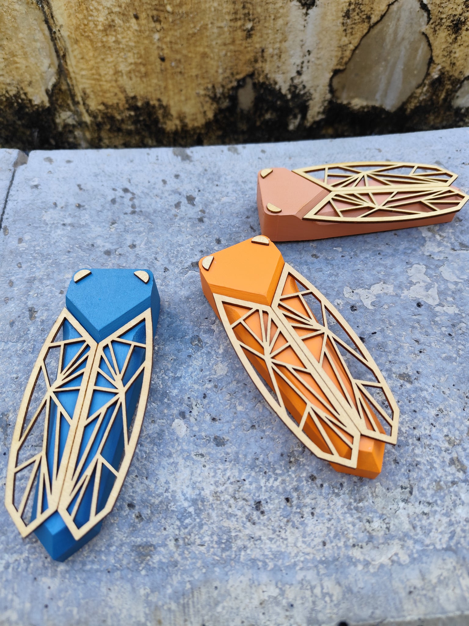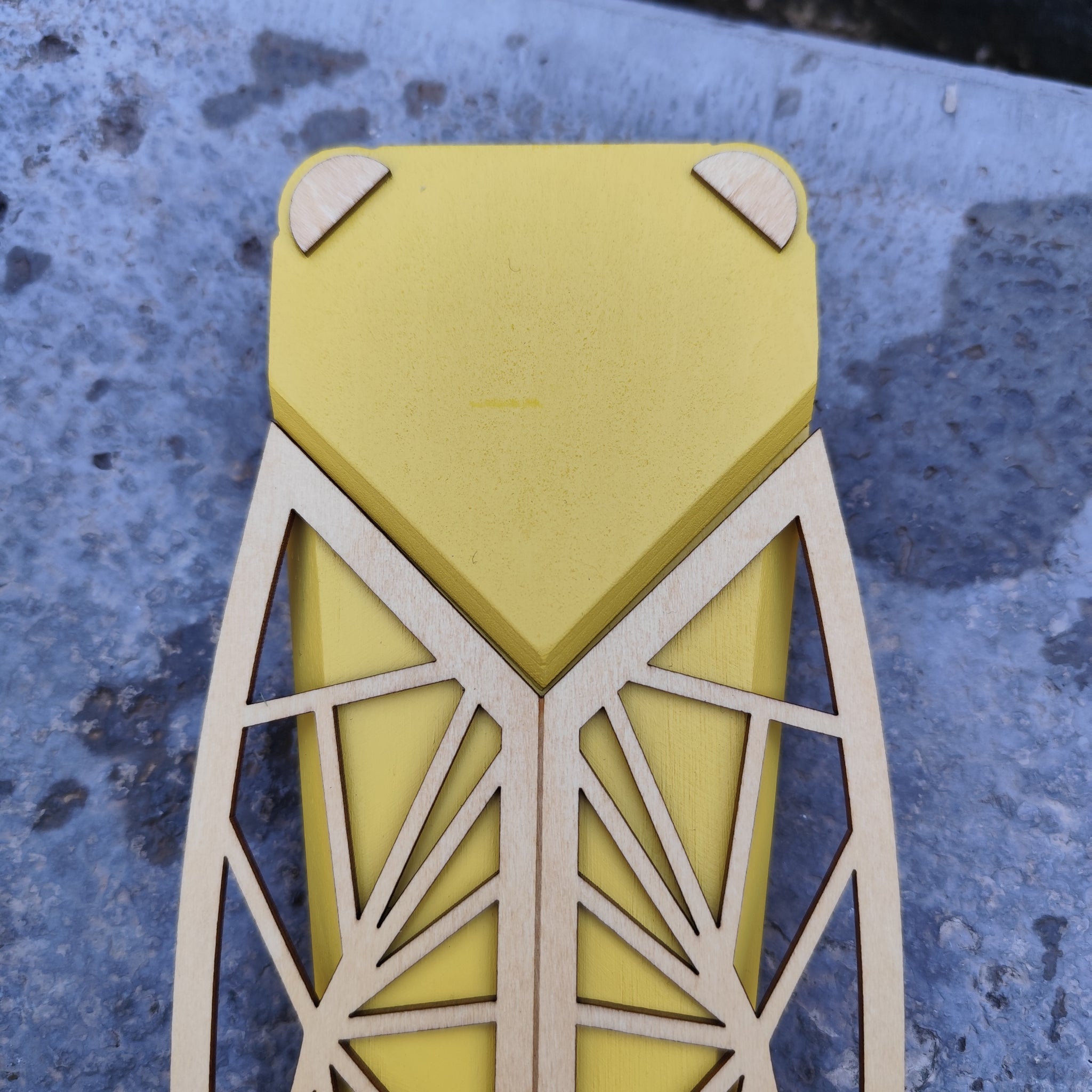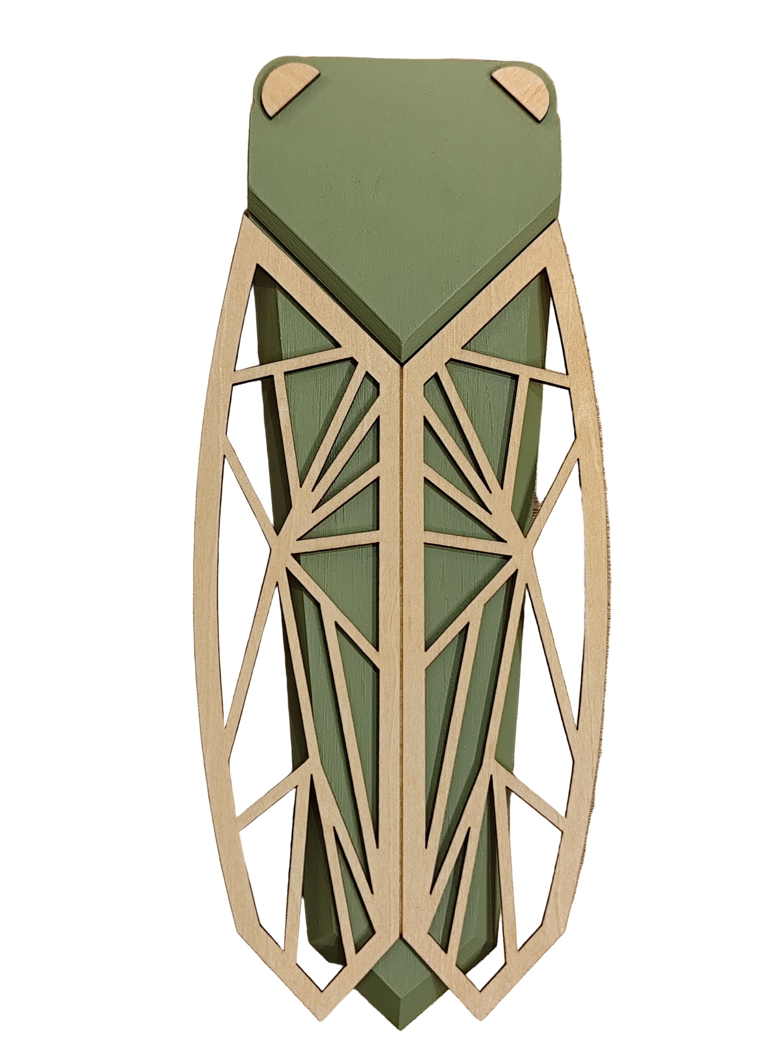 Cigale en bois massif peint et bois naturel.