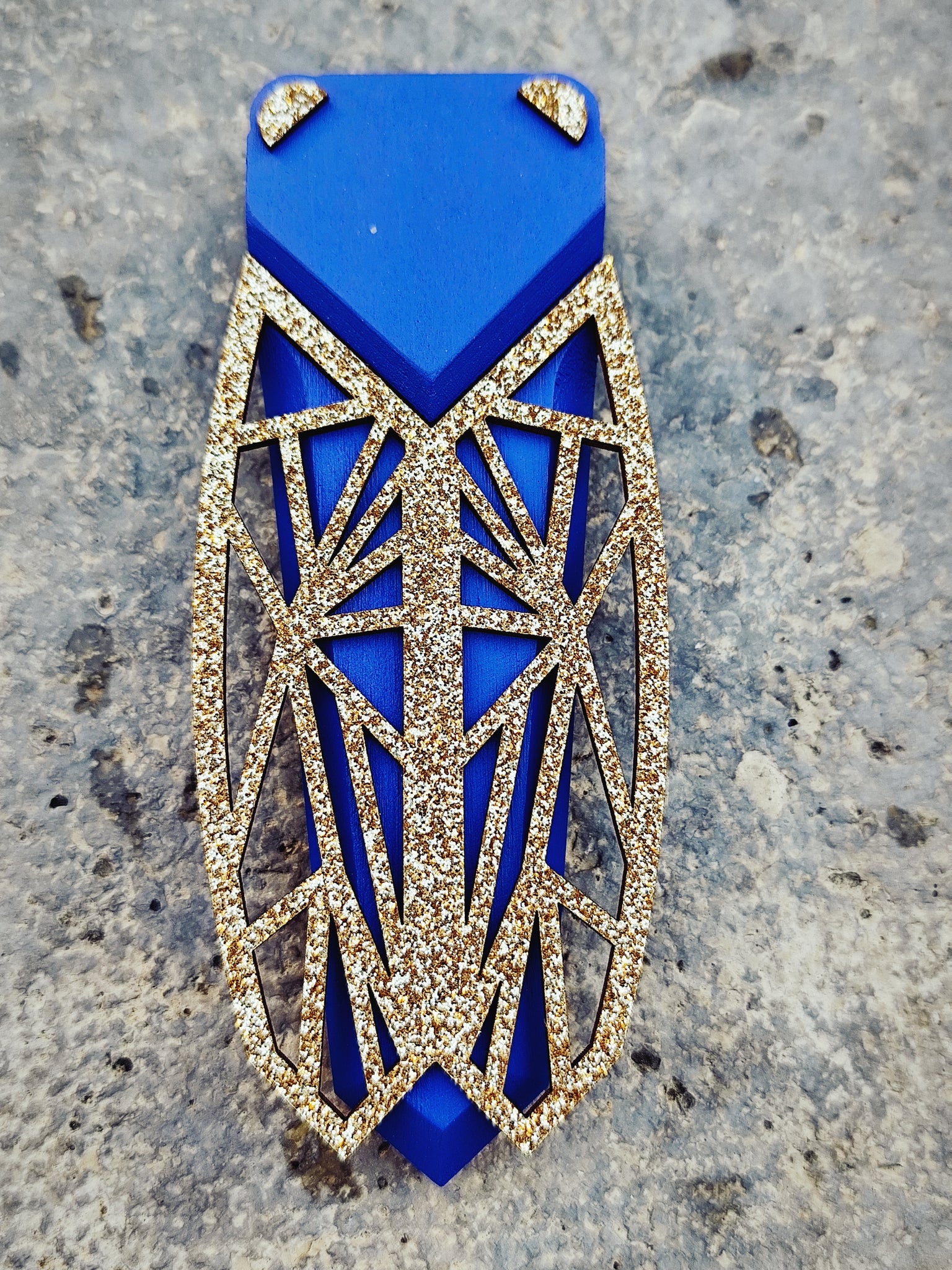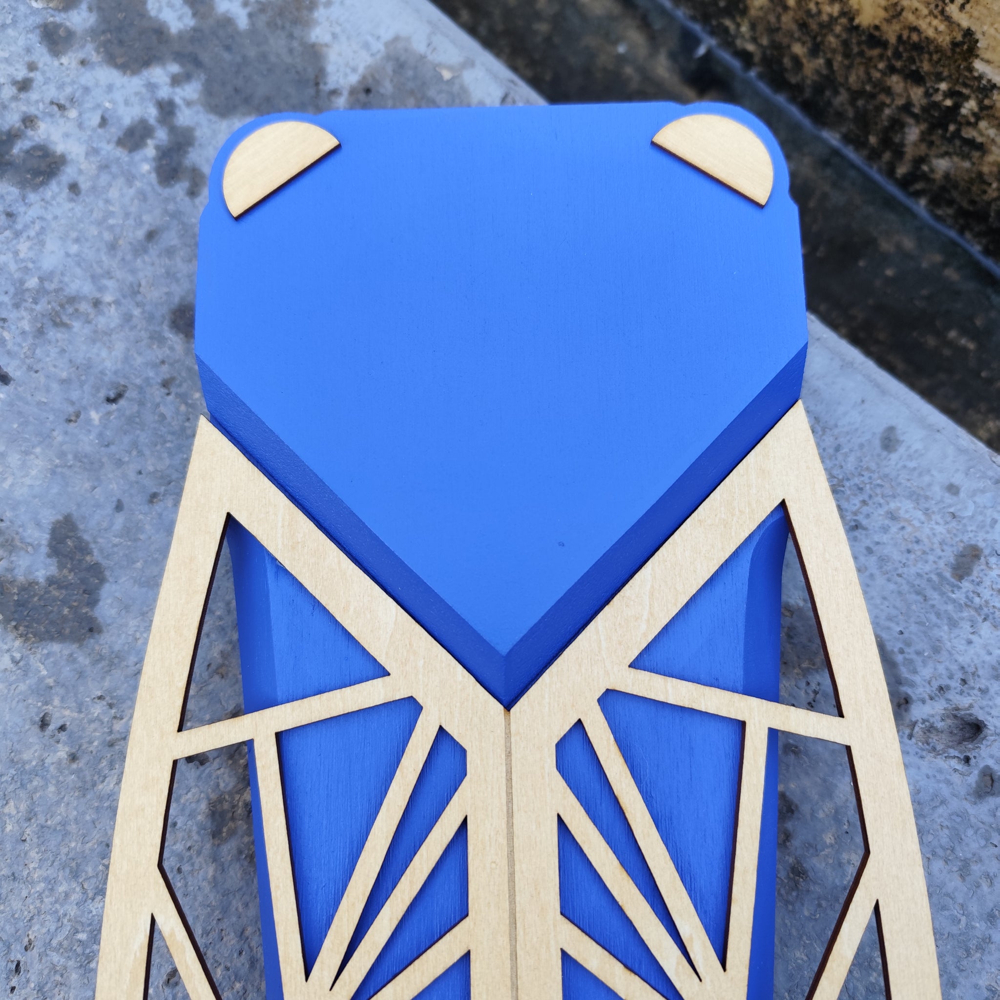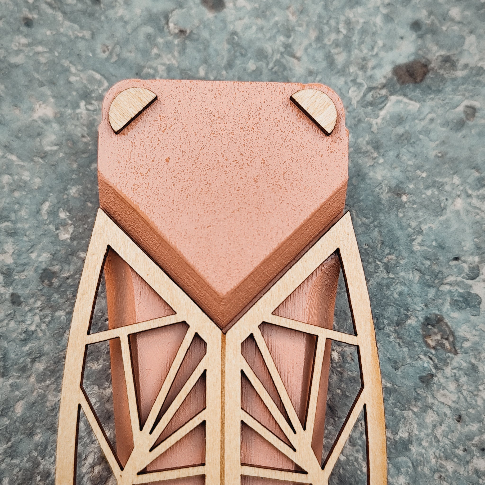 Cigale en bois massif peint et bois naturel.